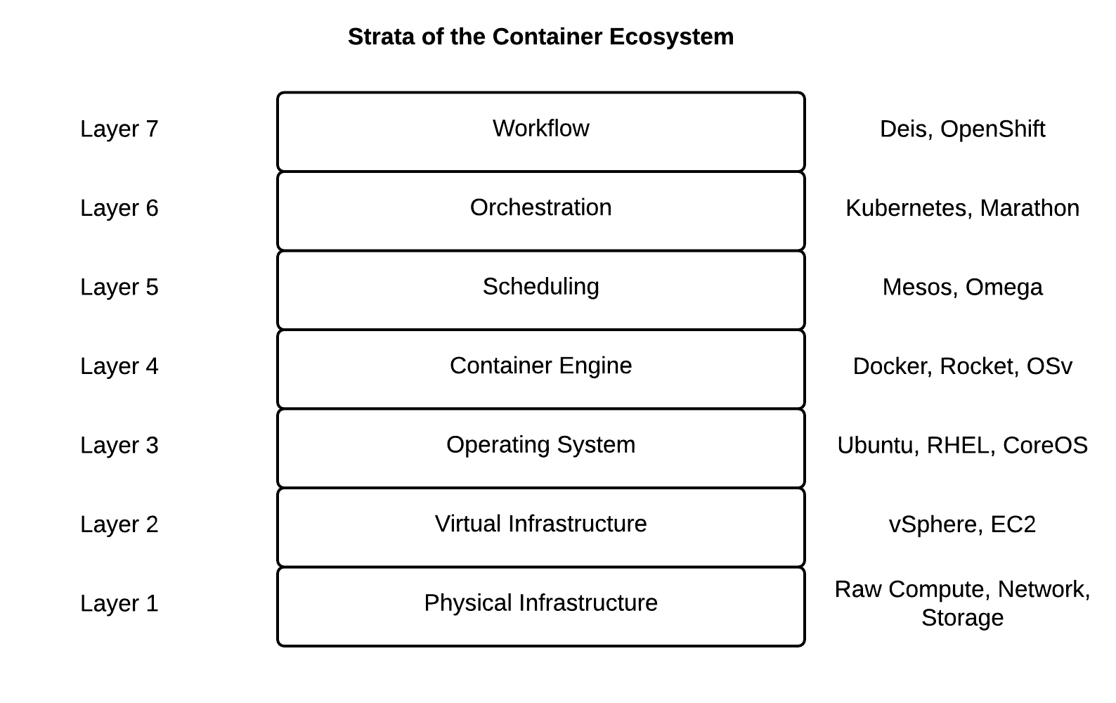 Especially insightful was the comment by the founder of Deis, with a link to this technology stack diagram: